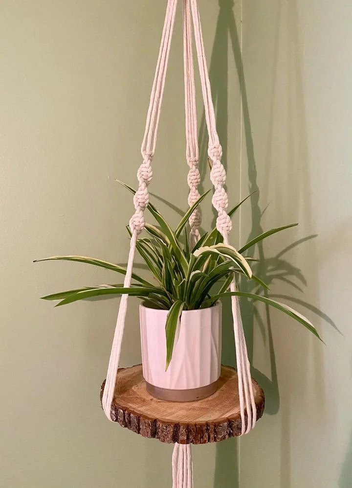 All the retro vibes with this class! Sam from Macrabe will lead you in creating your own hanging macrame plant holder with natural wood shelf and potted plant!